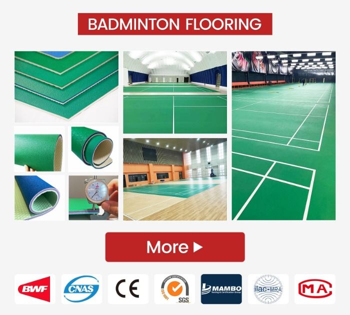 For badminton court, 6 mm vinyl flooring is a very suitable choice, badminton sports on the field of elasticity and rebound performance requirements of high, and 6 mm badminton court vinyl flooring is able to meet these needs, it can provide just the right amount of elasticity, so that badminton can be landed on the ground to have the right height and speed of the rebound, so that the athletes are able to better control the ball direction and rhythm, and this flooring in the And this kind of floor in the choice of color provides a variety of choices, and can also be customized to your own favorite color, or according to the overall style of badminton venues to match, to create a beautiful and comfortable sports space.