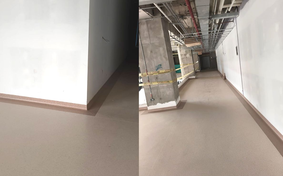 Upon completion of the flooring installation, the construction team performed a thorough disinfection and waxing treatment to ensure the floor environment fully complied with the hospital's stringent hygiene standards.