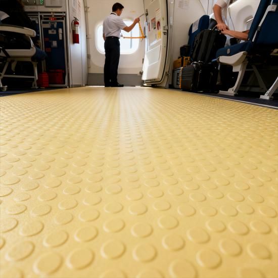 Aircraft interiors must not only meet functional requirements but also create a comfortable and stylish atmosphere. PVC aircraft flooring offers a wide range of design options, including various colors, textures, patterns, and surface finishes, allowing airlines to customize their flooring to match their brand identity and cabin aesthetics. From classic wood and stone textures to modern minimalist geometric patterns, PVC flooring provides endless possibilities. Additionally, different areas can have tailored designs—high-durability surfaces for aisles and more luxurious patterns for first-class seating areas—enhancing the overall passenger experience. Personalized flooring designs contribute to a more visually appealing and comfortable cabin environment.